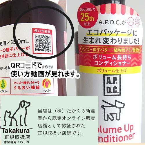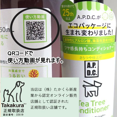 たかくら新産業のA.P.D.C.シリーズとmade of organicsシリーズのペット用シャンプー、コンディショナーです。