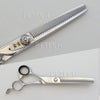 胡蝶 レフトシリーズは意外に多い左利きユザーのニーズにお答えしたハイグレードシリーズの左用セニングシザー(左用スキ鋏)です。刃付け、磨きは当社の高級仕様に準じた造りで素晴らしい使い心地をお約束いたします。プライスも高くなりがちな左用にもかかわらず約20%のコストダウンを実現しました。すべての左利きのトリマーさんに使って頂きたい逸品です。