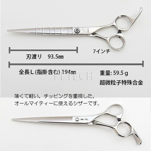 他の画像を見る 『 KERRYロゴ入りシザーケースでお届け。 』 ケリー WW-70SA ストレート トリミングシザー【7インチ】 販売価格 ¥ 61,600 税込 一般価格 ¥ 61,600 税込 お気に入りに登録する