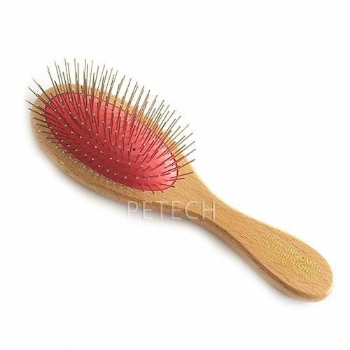 INTドイツピンブラシ レギュラーピンはブラッシング時のショックを吸収するラバークッション。静電気が起きにくい高級木製柄。被毛を傷めず効果的にブラッシングできます。