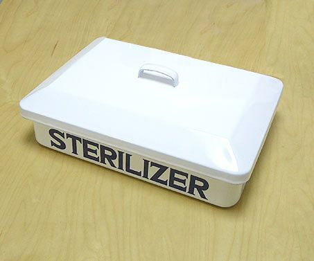ハサミ等、器具をクリリン除菌エタノール液に浸す際はホーロー消毒器を使用すると便利です。